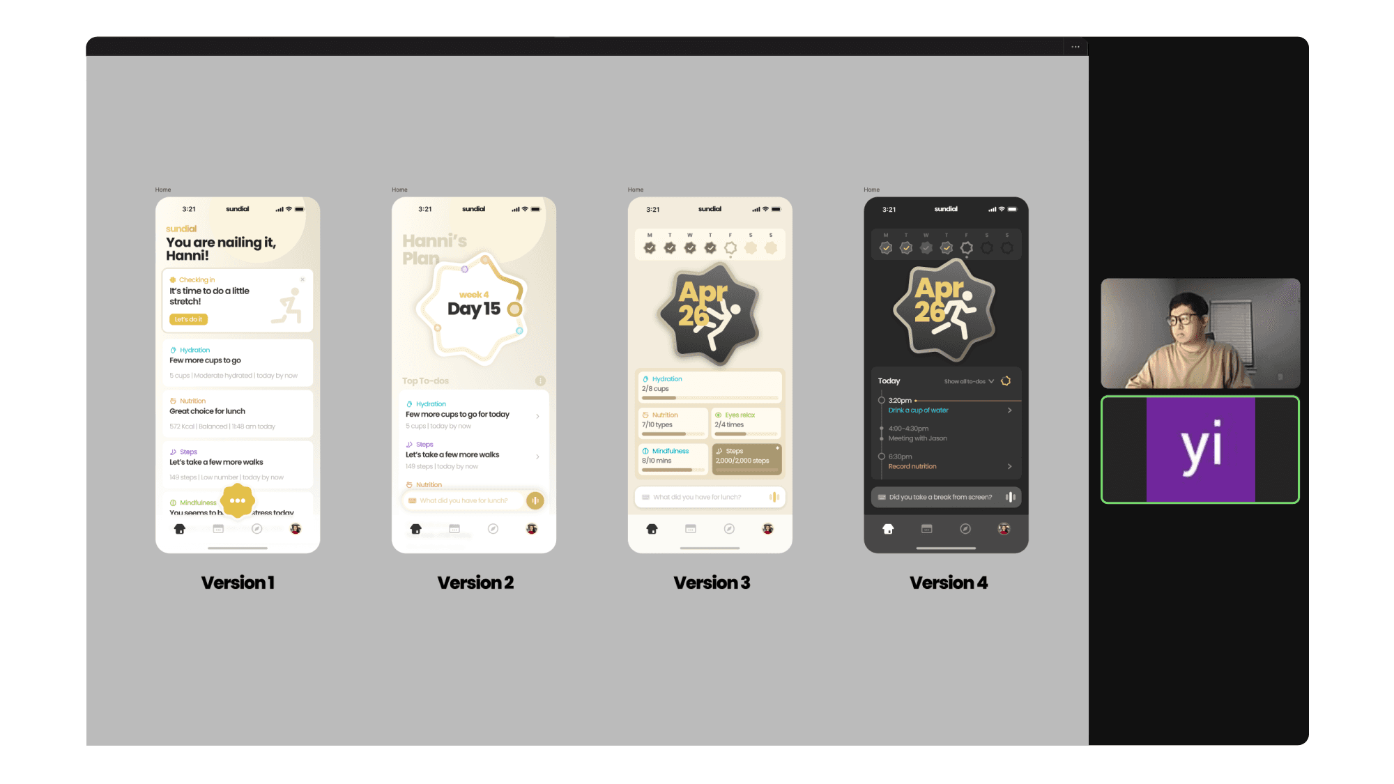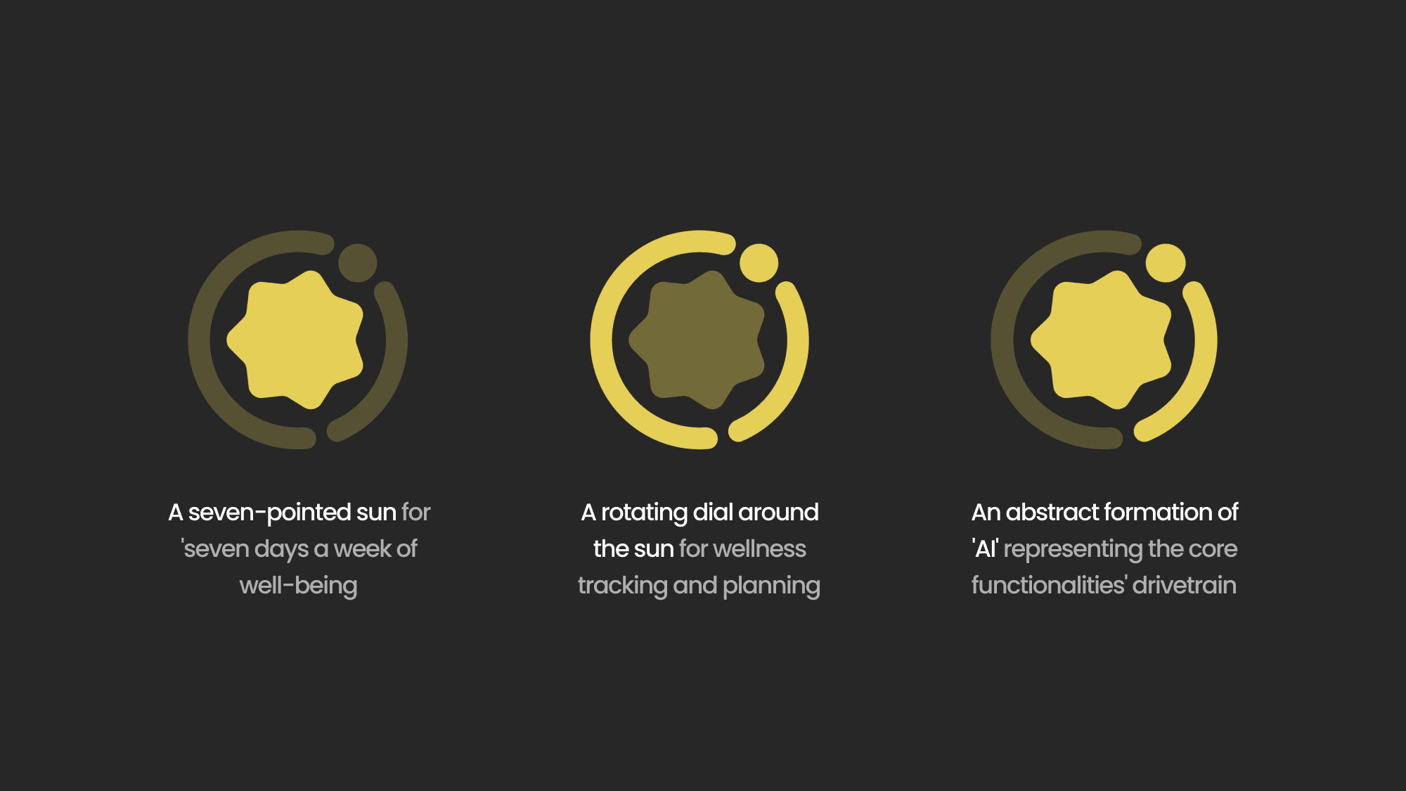After considering over 50 name options, we ultimately chose 'Sundial' to represent the brand's warm, supportive, and healthy image. I designed the logo and color scheme to reflect this energy, aiming to motivate users and inspire daily drive.