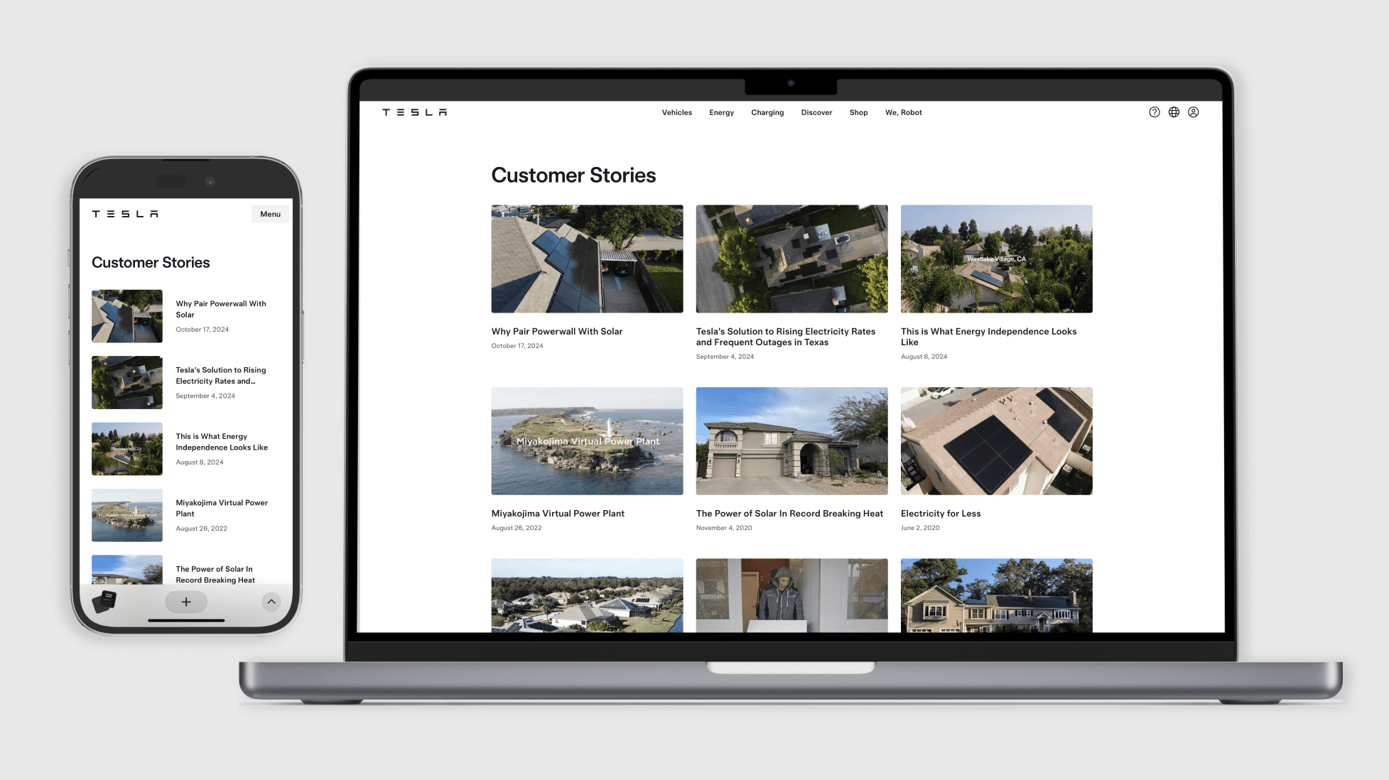 Tesla's Digital Experience Team maintains a mobile-first approach in designing responsive web experiences. This principle not only ensures that users can access the mobile platform more quickly, but it also provides a more adaptive format when transitioning to a desktop view. I find this approach to be an effective method.